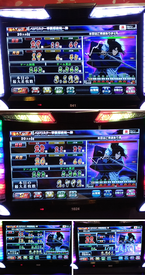 ・『バジリスク~甲賀忍法帖~絆』は最大差枚数2000枚overが4台以上