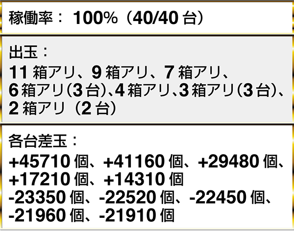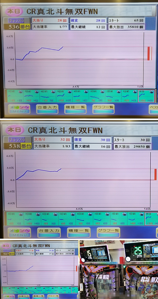 ・『ぱちんこCR真・北斗無双』にプラス40000個超の差玉が2台