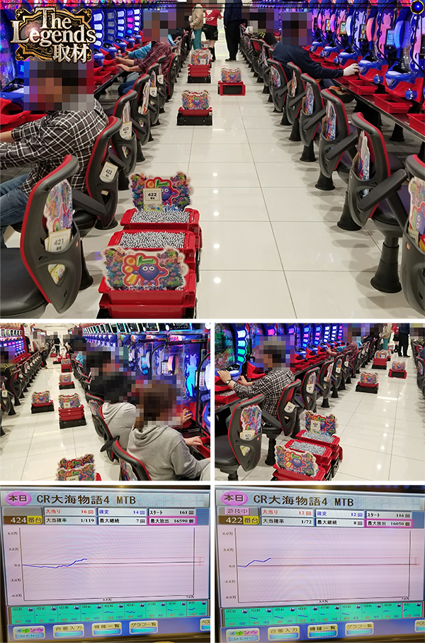 取材日である4月18日のホール内は、パチンコとパチスロがどちらも大盛況。いたるところでキラキラと輝く笑顔がみられ、伝説の光景に出会えるといった期待は高まった。