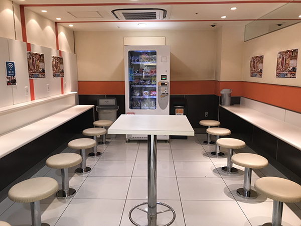 また、広々としたホール内には食事もとれるレストスペースを完備。軽食を購入できる販売機やフリーWi-Fiといった設備も優れているため、休憩の際も充実した時間を過ごせそうだ。
