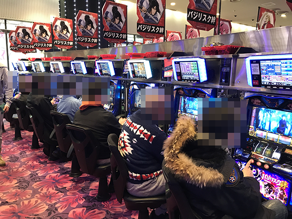 人気を集めていた「沖ドキ!」や「バジリスク~甲賀忍法帖~絆」などにも、活躍をしているプレイヤーが多く、シマ内は華やかな雰囲気に包まれていた。