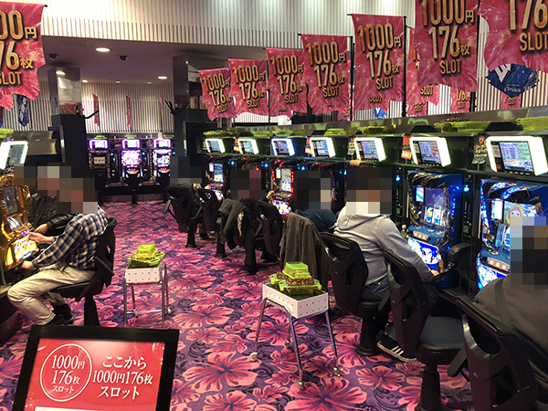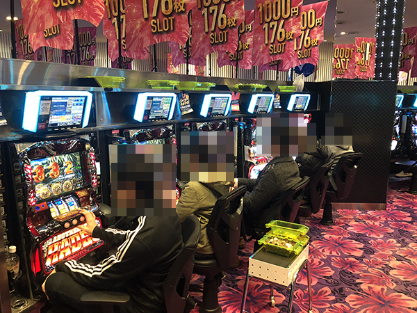 1000円/176枚パチスロでは、「ミリオンゴッド-神々の凱旋-」や「政宗2」などが楽しまれており、シマ内は華やかなムードとなっていた。