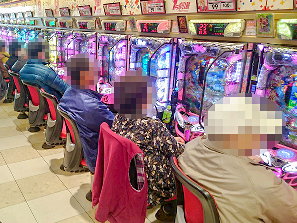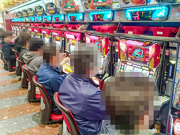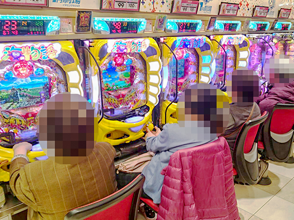 16時半ごろの1円パチンコの様子をうかがうと、「CRスーパー海物語IN JAPAN 319バージョン」や「CRスーパー海物語IN沖縄4」、「CR大海物語4」といった海物語シリーズが大好評。プレイヤーたちの見事なパフォーマンスが披露され、周囲から注目を集めていた。