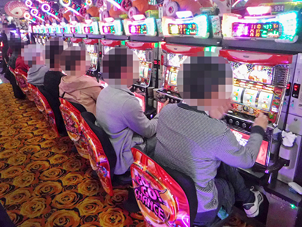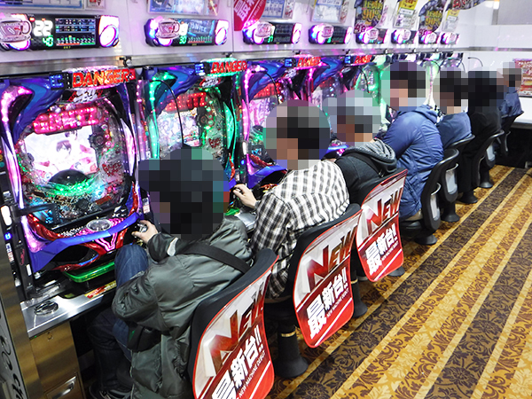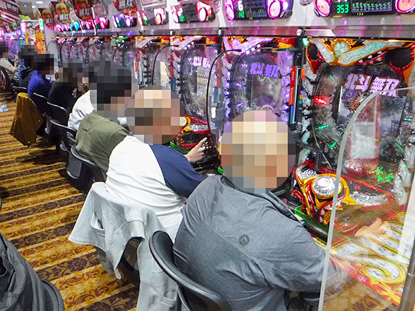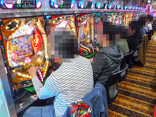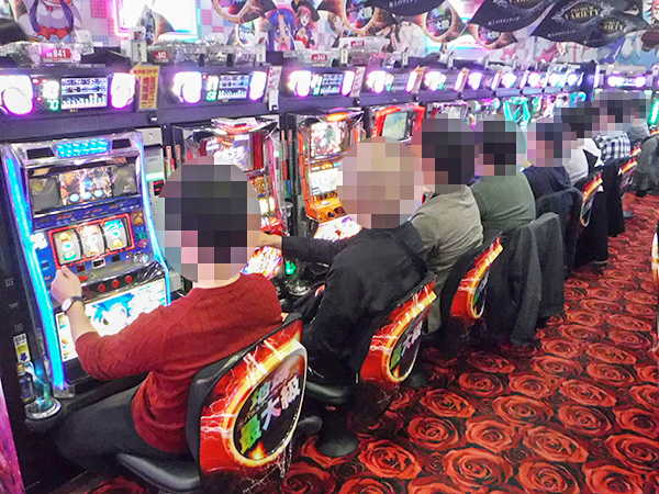 取材時の店内には大勢のプレイヤーが集まっており、パチンコ・パチスロ共に盛り上がりを見せていた。