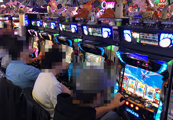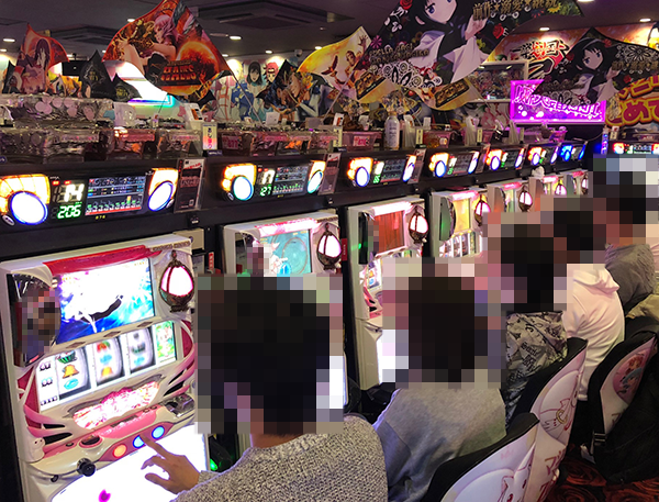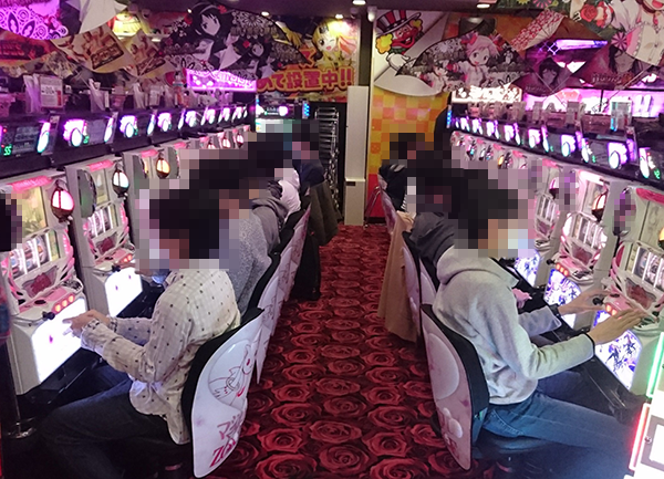 14時頃のパチスロでは、朝イチから人気を集めていた「バジリスク~甲賀忍法帖~絆」と「SLOT魔法少女まどか☆マギカ」で、たくさんのプレイヤーが活躍していた。