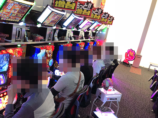 「パチスロ聖闘士星矢 海皇覚醒」をはじめ、いくつもの機種が盛り上がっていた「やすだ前橋店」。