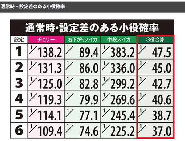 チェリーやスイカの確率に設定差が設けられている。