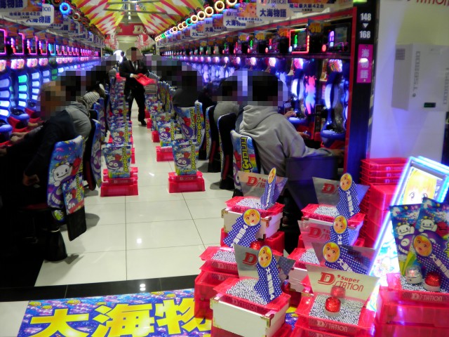 「Super D’STATION大間々店」の『CR大海物語4』で、店員が忙しそうに動き回って賑わっている光景。