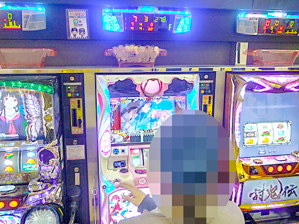 そのほか、「パチスロコードギアス反逆のルルーシュR2」やジャグラーシリーズで機種の魅力を堪能しているプレイヤーを確認しており、実に楽しそうにレバーを叩いていた。