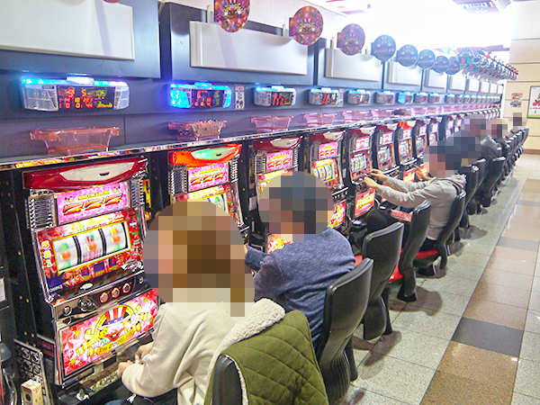 店内には老若男女を問わず多くのプレイヤーが集まっており、パチンコ・パチスロの各シマから大いに盛り上がりが感じられた。