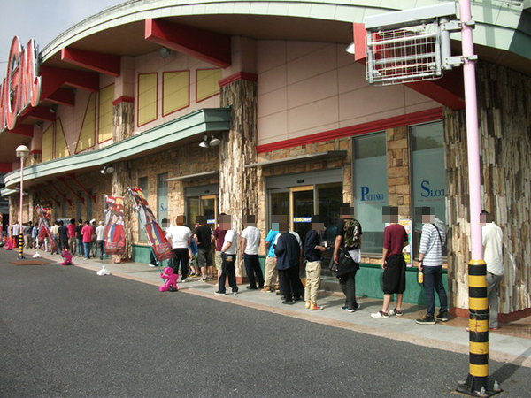開店前に並んでいたプレイヤーは50名以上。開店時間に合わせて来店するプレイヤーも多く、朝イチからホール内は大きく賑わっていた。