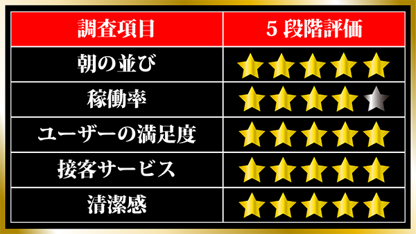 満足度の高い遊技面だけでなく、ホール内の全てが清潔に保たれていたことにも好印象を抱いた。また、スタッフは常に笑顔でキビキビと接客しており、プレイヤーたちの快適な遊技をしっかりとサポートしていたことも魅力的に映った。