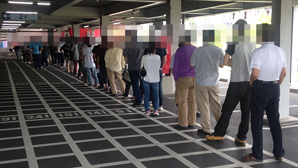 朝の入場抽選に参加していたのはおよそ60人。その後も続々とプレイヤーの数は増え続け、開店直前には200人ほどが集まっていた。