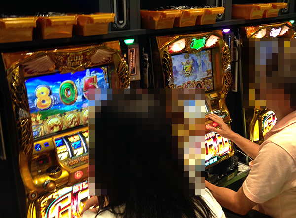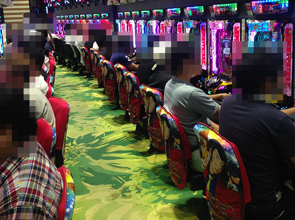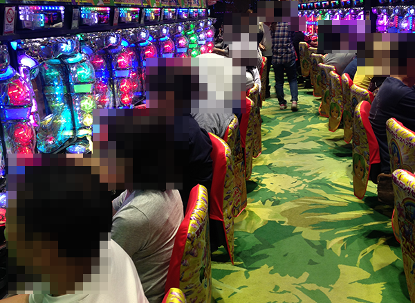 夕方頃になっても20円パチスロの勢いが衰えることはなく、空き台を見つけるのも一苦労といったほどに大勢のプレイヤーが遊技を楽しんでいた。