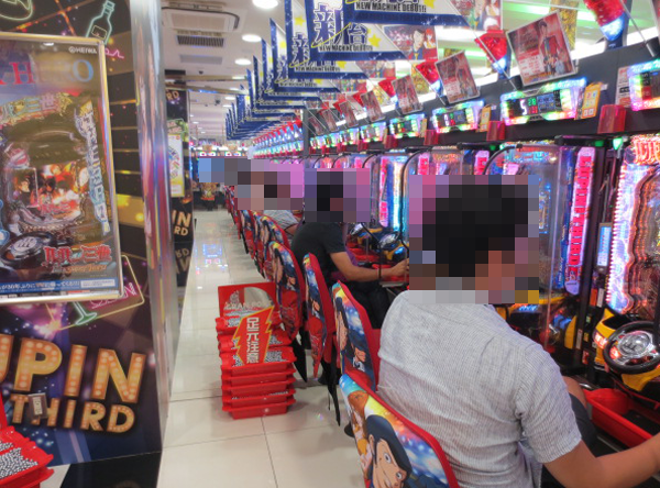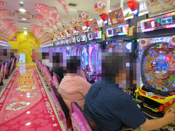 14時ごろにはプレイヤーの人数に比例するように笑顔の数も増え、4円パチンコでは「CRルパン三世 I’m a Super hero」や「CRキャプテン翼」、「CR牙狼 金色になれ」といったMAXタイプの盛り上がりがとくに大きい。