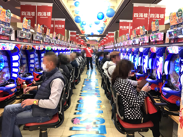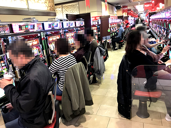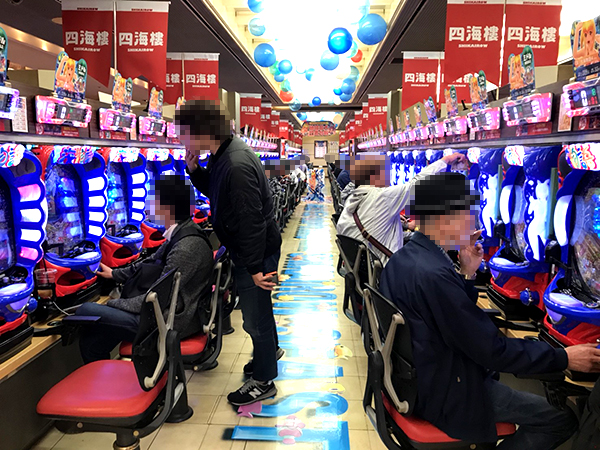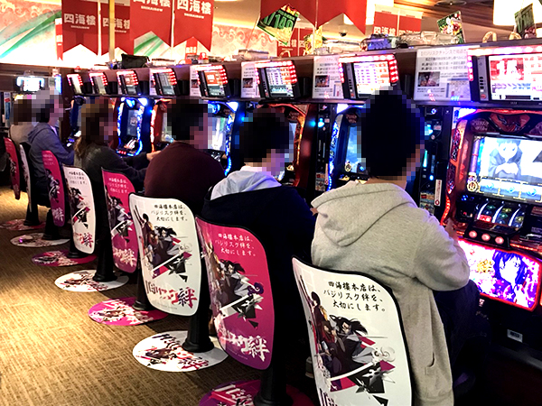 ほかに、「押忍!番長3」や「バジリスク~甲賀忍法帖~絆」なども高稼働。機種の人気ぶりを改めて確認した光景であった。