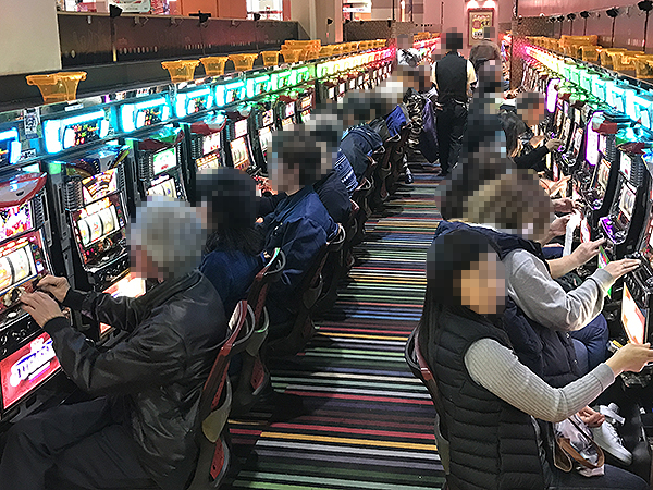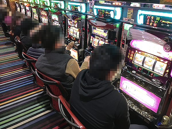パチスロコーナーを見てみると、「マイジャグラーⅢ」や「ゴーゴージャグラー」などボーナスタイプがにぎわっており、シンプルながら味のある告知演出を堪能するプレイヤーを確できた。