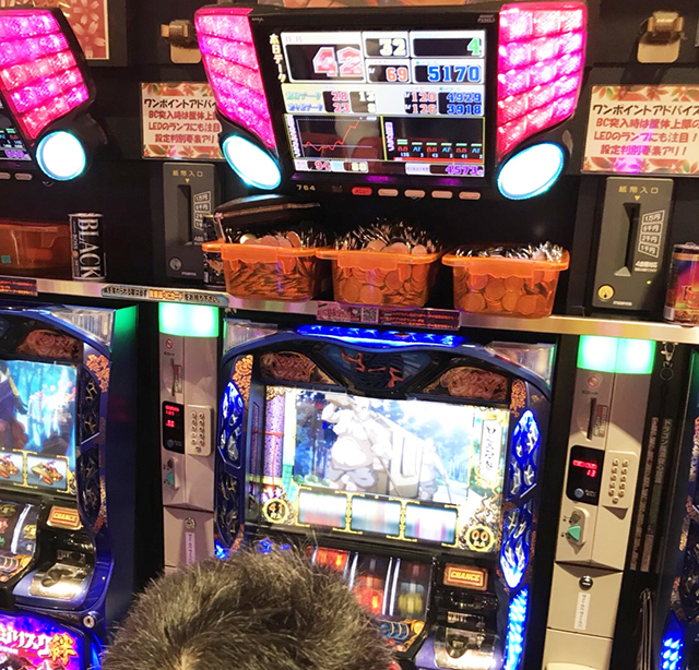 台上に持ち玉がズラリと並ぶ並ぶ…。