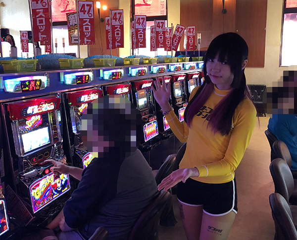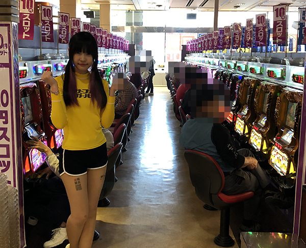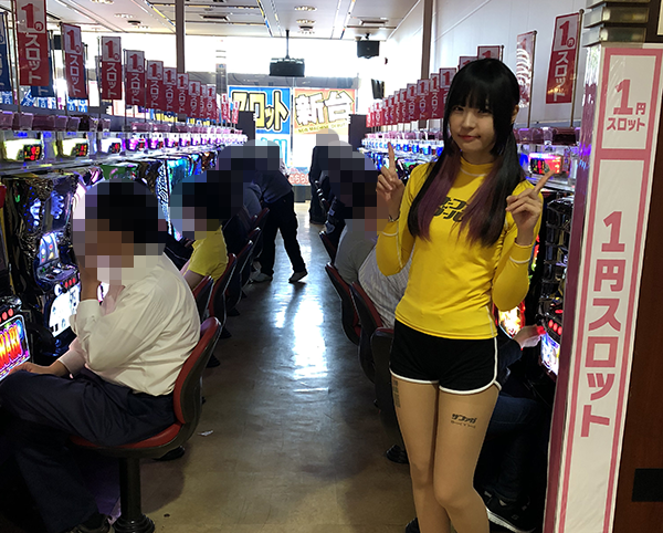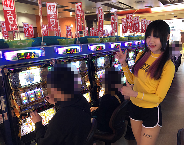 パチスロコーナーに広がる笑顔の多さに、かのんちゃんのテンションもグングンと上昇!