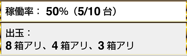 ・『CRトキオスペシャル』では2名中2名が持ち玉遊技