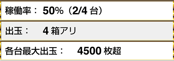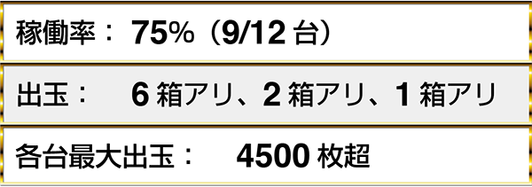 ・『ミリオンゴッド-神々の凱旋-』は9台中3台に1箱以上の出玉アリ