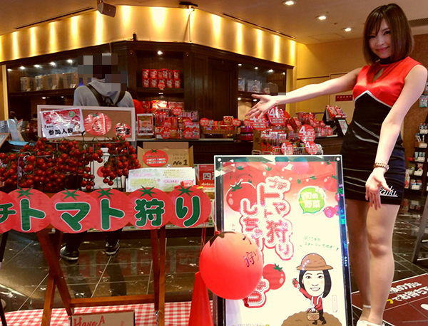 カウンターの前には、トマト狩りができるスペースも設けられていた。ホールにいながらも収穫体験ができるといったユニークな取り組みに興味を示しているプレイヤーも多かったように思う。