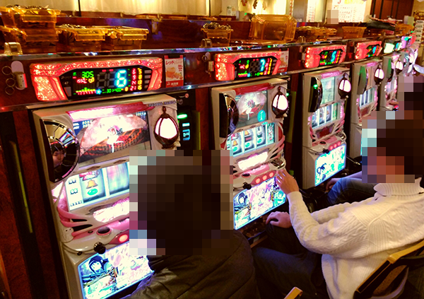 ほかにも、「アナザーゴッドハーデス」や「SLOT魔法少女まどか☆マギカ」、「沖ドキ!」などに、にぎやかな光景が広がっていた。
