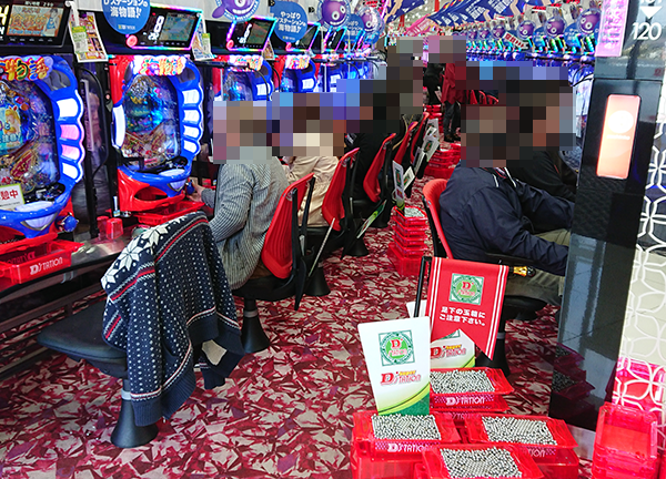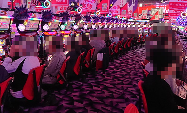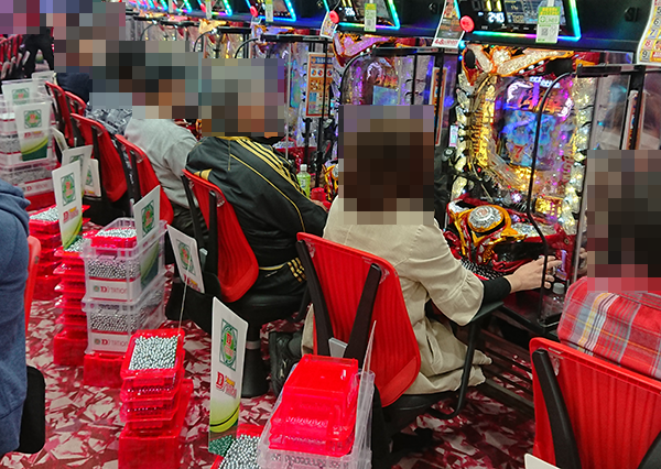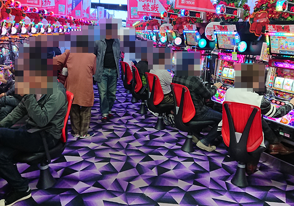 4円パチンコのなかで、とくに活気づいていたのが海物語シリーズと「ぱちんこCR北斗の拳7 転生」。華麗なパフォーマンスを披露するプレイヤーが目立ち、シマ内は明るい空間となっていた。