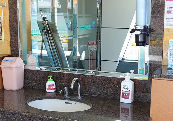 ホールの入り口に設けられた洗面台には、うがい薬と紙コップが用意されている。衛生面が気になるプレイヤーでも、気持ちよく過ごせるといった印象を受けた。