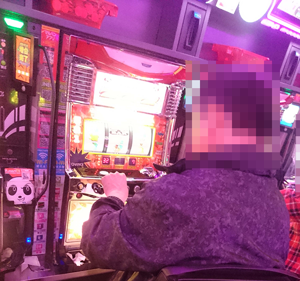 パチンコとパチスロがどちらもにぎわっているなかで、ひときわ輝いてみえたのは「ニューアイムジャグラーEXーKT」。
