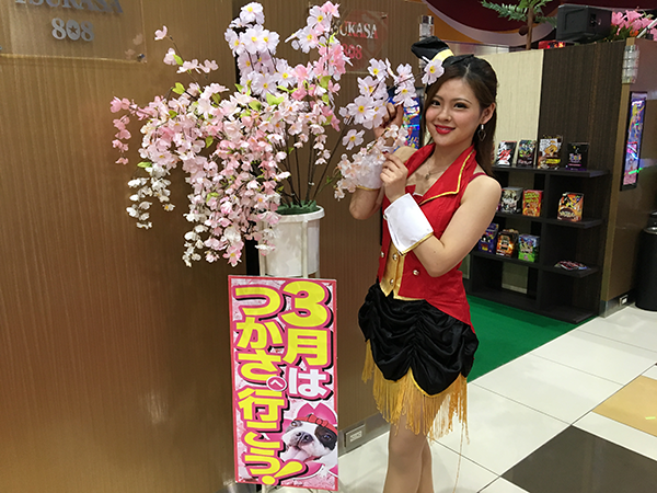 定番機種から新台まで、大勢のお客様でにぎわっていますね~☆ 琴美ちゃんも明るいムードを共有できて、すごくはしゃいじゃっていますヾ(o´∀`o)ノワァーィ♪