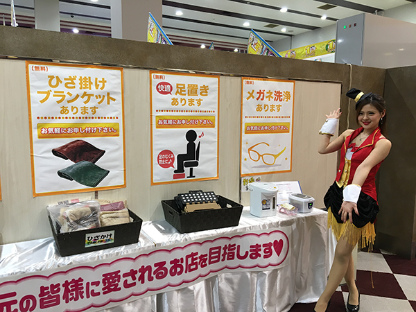 コチラは、ひざかけや足置きの無料レンタルサービスコーナー。