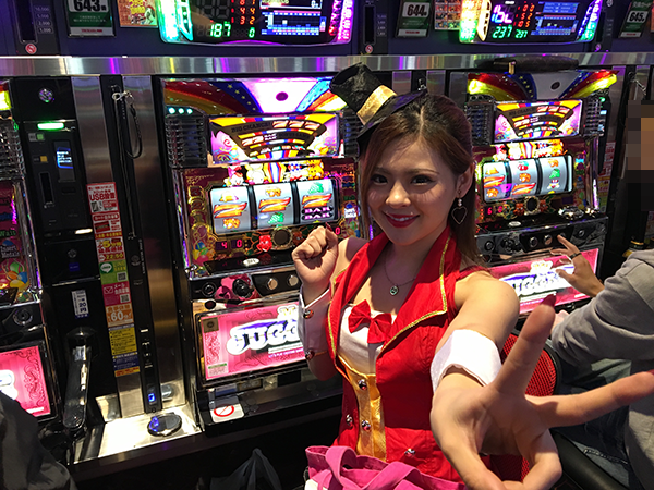 琴美ちゃんは「マイジャグラーⅢ」をチョイス。たくさんペカらせちゃおう(^з^)-☆