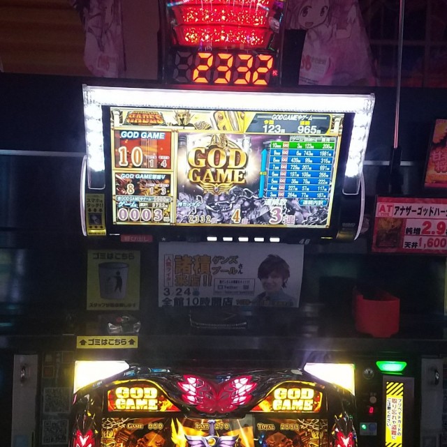 ゴッドシリーズを打つ上で、大事な早い当りを得ている台を多く発見できました。