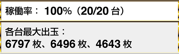 『バジリスク~甲賀忍法帖~絆』と『ミリオンゴッド-神々の凱旋-』に最大獲得枚数が6000枚を超えるデータを目撃した。