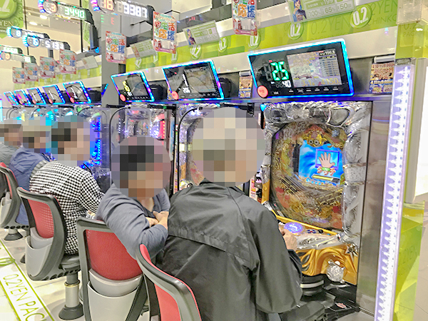 15時ごろのパチンココーナーを見てみると、1円パチンコが大人気。