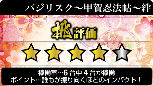 「バジリスク~甲賀忍法帖~絆」とジャグラーシリーズを筆頭に、ホール全体が大盛況となっていた。
