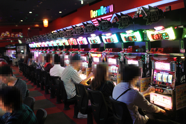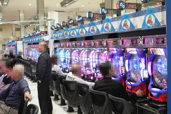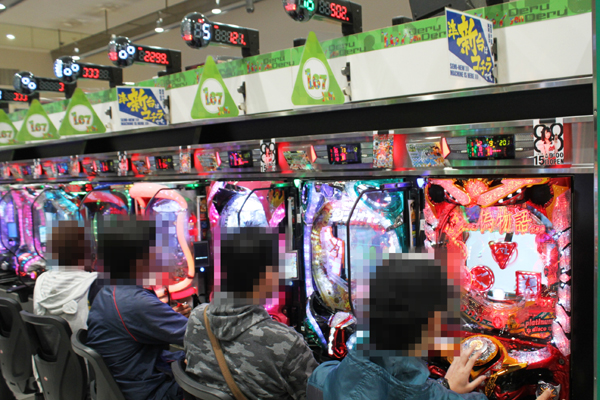 16時頃の店内はパチンコ・パチスロともに多くのプレイヤーでにぎわっていた。