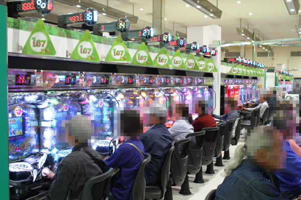 4円パチンコでは、「CR大海物語4」をはじめとした海物語シリーズが年配プレイヤーからの支持を集め、明るい雰囲気。プレイヤー同士で会話しながら遊技する姿も見受けられ、充実した時間を過ごせていることが伝わってきた。