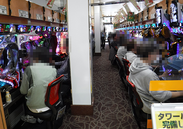 「ぱちんこCR真・北斗無双」や「CR真・花の慶次2」などがにぎわっており、多くの場所が明るい雰囲気に包まれていた。