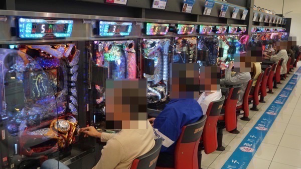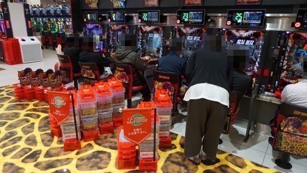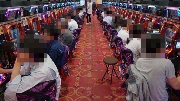 4円パチンコをみると、「ぱちんこCR真・北斗無双」で圧巻のパフォーマンスを披露するプレイヤーが多数存在。シマ一帯には華やかな光景が広がっており、大きな盛り上がりを見せていた。