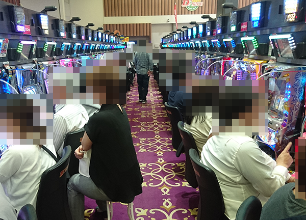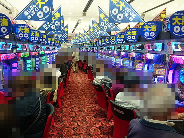 14時過ぎの4円パチンコでは、「CR大海物語4」を中心とした海物語シリーズの支持率が高く、シマ内は華やかな雰囲気に包まれていた。