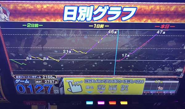 15番台の【押忍!番長3】に2日間連続でウェーブ発生!