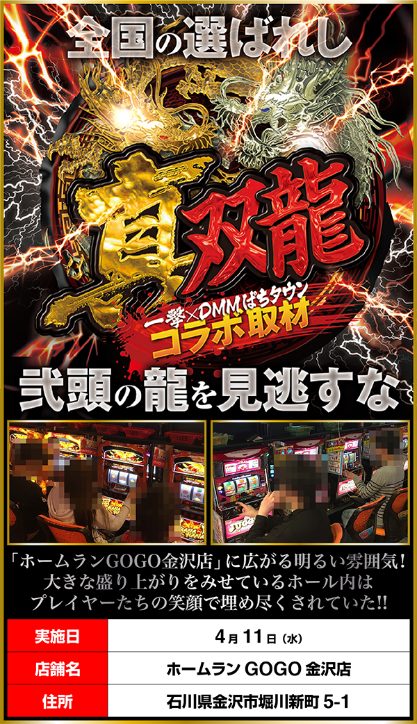 「真双龍」の舞台となったのは、1000台以上の設置台数を誇る「ホームランGOGO金沢店」。