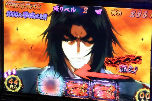 「忍者の日」は全く関係ないと思うが、朝一の主役はやはり『バジリスク~甲賀忍法帖~絆』(7台)。不動の人気が一目瞭然!入場開始後、真っ先に満台に!!![]()