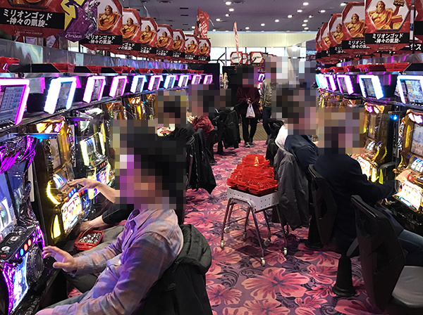 17時頃の1000円/47枚パチスロをみると、フロア全体が大きく盛り上がっていた。