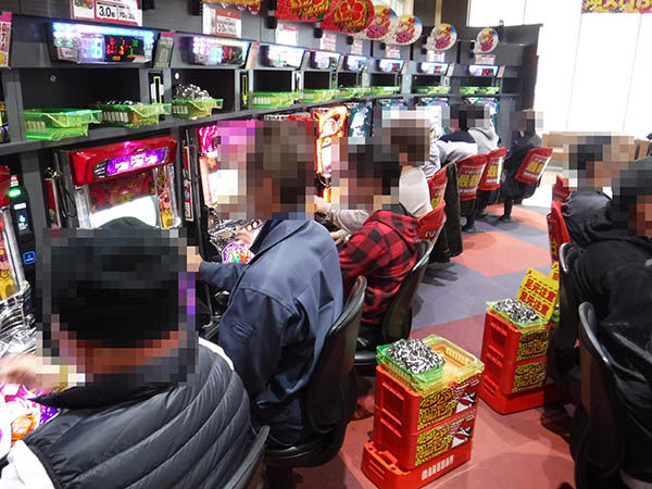 大きくにぎわっていた1円パチンコは、海物語を中心に高稼働。バラエティコーナーも空き台が少なく、いくつもの機種が活気づいていた。