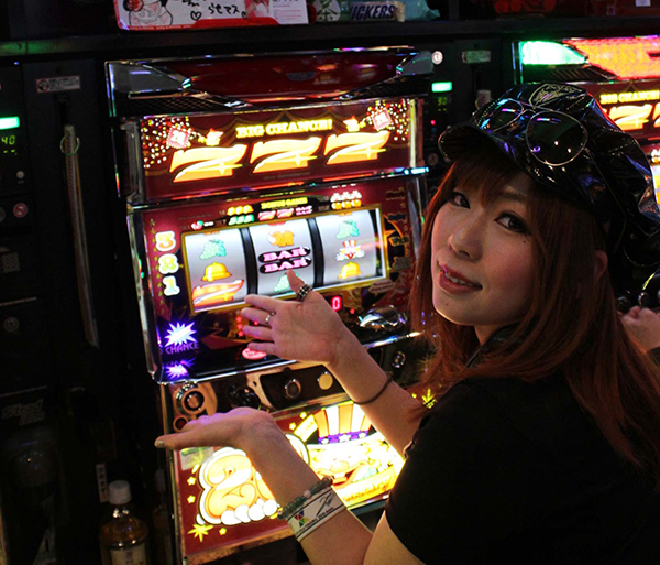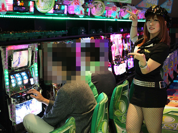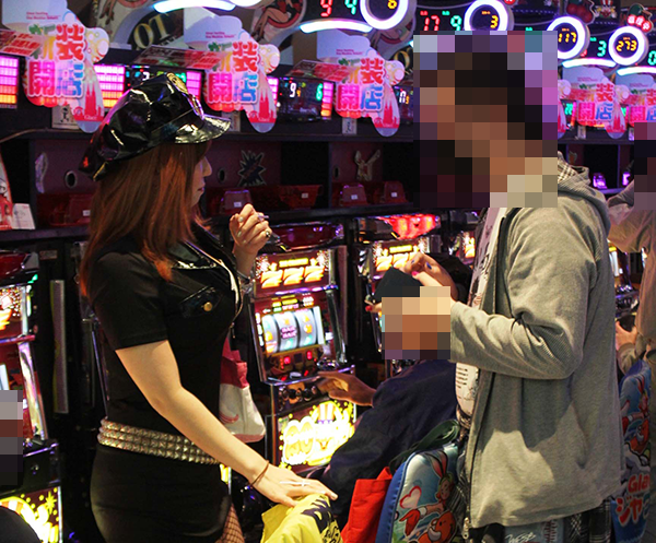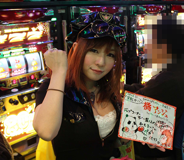 移動先の「アイムジャグラーEX」でも、またまたお客さまと会話を楽しむアンジュちゃん♪