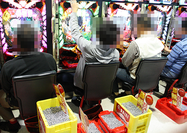午後の4円パチンコをのぞいてみると、「ぱちんこCR真・北斗無双」や「CR牙狼GOLDSTORM翔」、新台の「パチンコCR偽物語」などで、機種のポテンシャルを発揮できているようなプレイヤーを目撃。