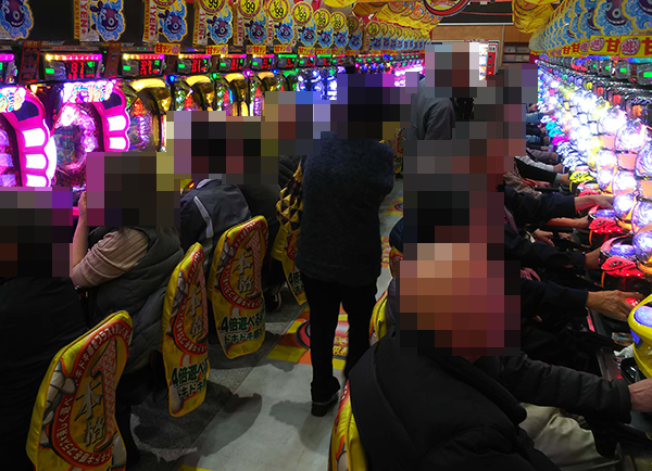4円パチンコにおいて、とくに目立っていたのが新機種の「ぱちんこCR一騎当千 サバイバルソルジャー」。理想ともいえる展開で遊技をおこなっているプレイヤーの輝くような笑顔も心に残っている。
